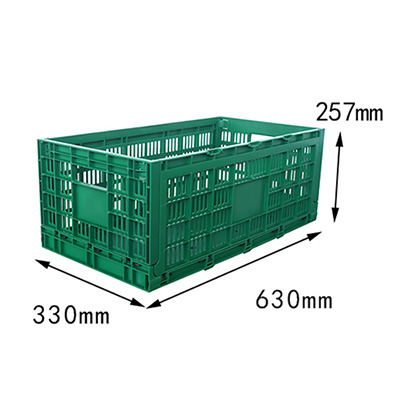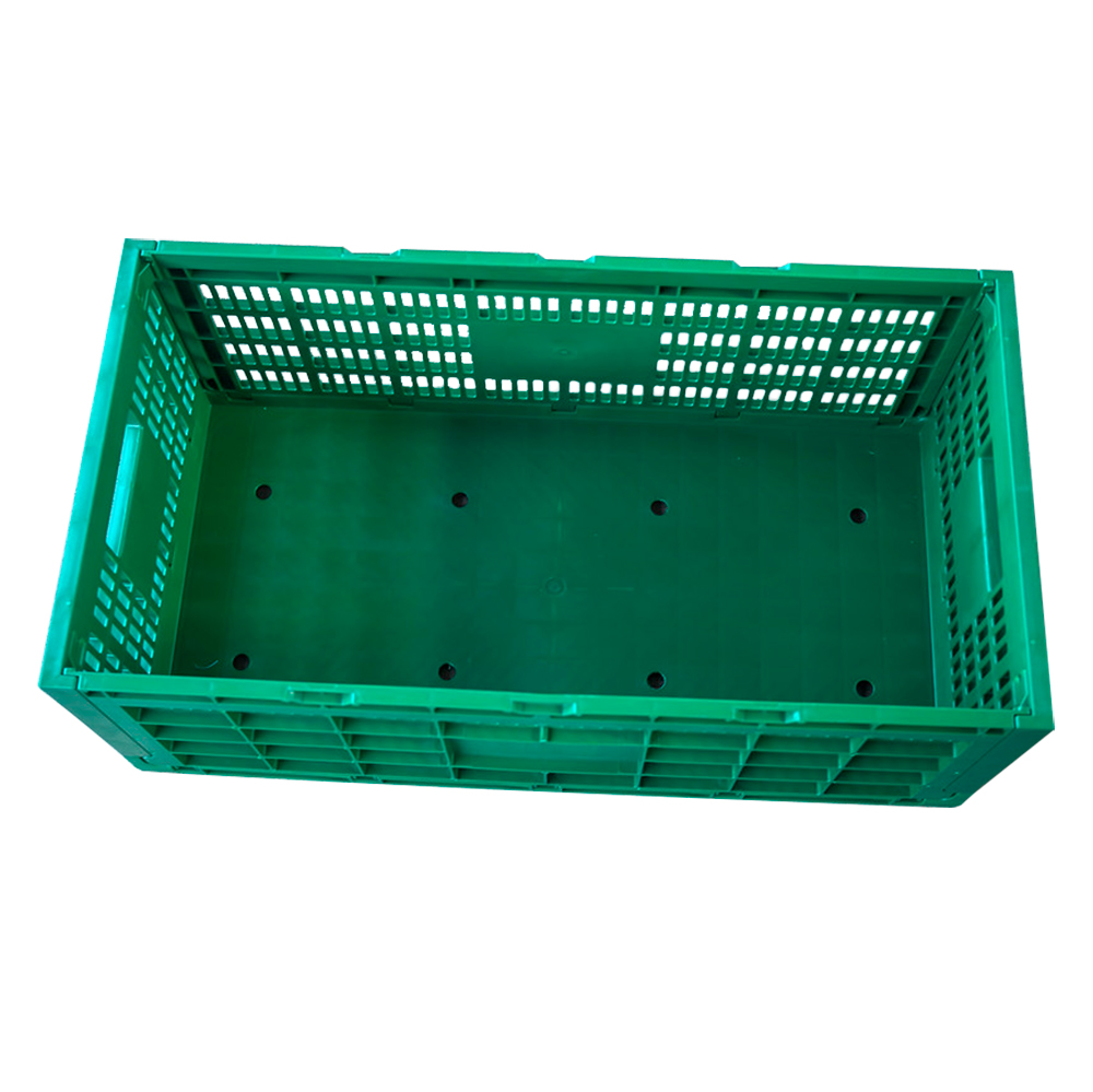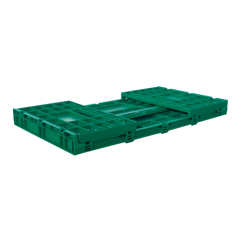 Plastična sklopiva kutija usvaja međunarodne standarde i surađuje s paletom tipa 1210, europskim standardom tipa 1208 ili japanskom standardnom paletom tipa T11, koja može ostvariti mehanizirano rukovanje, poboljšati učinkovitost prometa i kontrolirati stopu oštećenja tereta; također se može koristiti s kolicima za slaganje i premještanje.